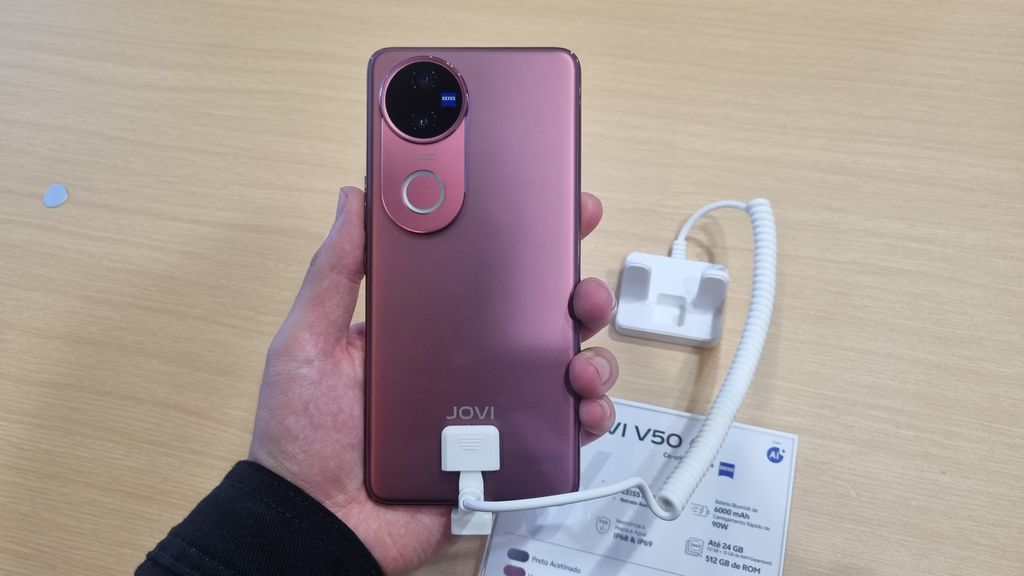 A Jovi trouxe o V50 com a promessa de "fotos de estúdio", cobrando R$ 4.999. O problema está no motor: ele é equipado com o Snapdragon 7 Gen 3, um chipset intermediário competente, mas longe de ser premium.
