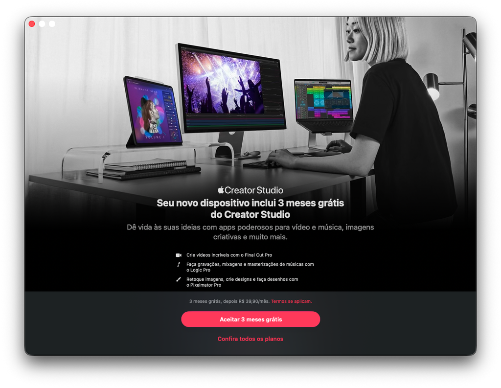 O preço é um grande destaque: o Creator Studio sai por R$ 39,90 ao mês, consideravelmente mais barato do que o valor anunciado pela Maçã nos Estados Unidos em dólares (US$ 12,99, cerca de R$ 70 em conversão direta).