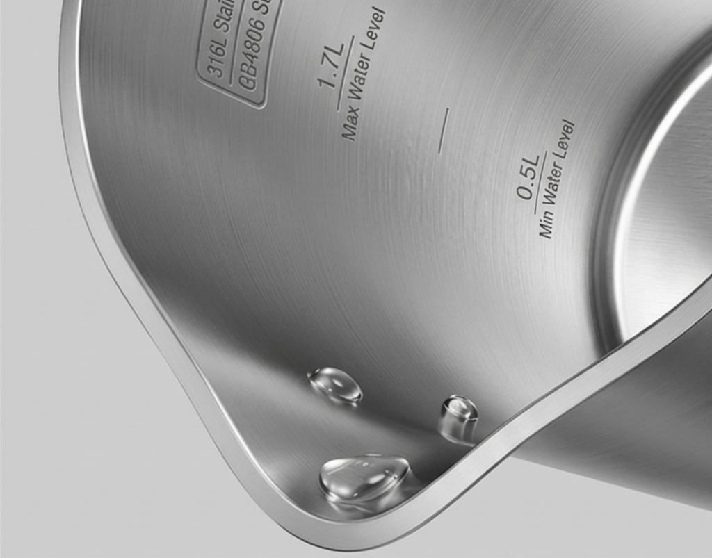 Um dos grandes destaques da nova chaleira da Xiaomi é o uso do aço 316Ti com titânio, um material mais resistente que os tradicionais usados em utensílios domésticos. A promessa envolve menos corrosão, maior durabilidade e água sem gosto metálico, mesmo após muito tempo de uso.