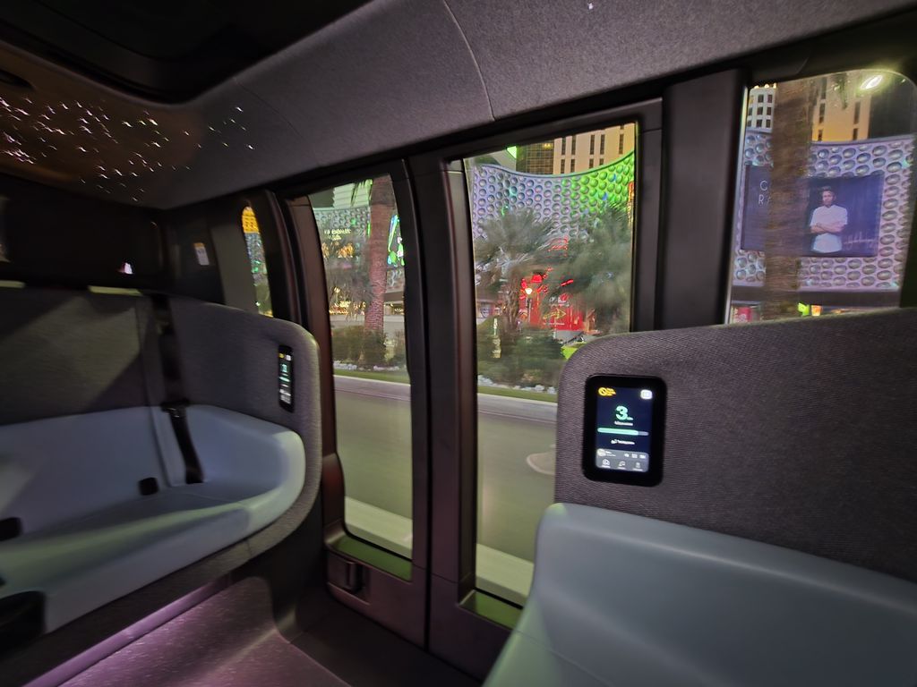 O carro tem quatro lugares, e nenhum deles é destinado a um motorista. Todos os passageiros contam com uma telinha para controlar a viagem, a temperatura do ar-condicionado e também a música.