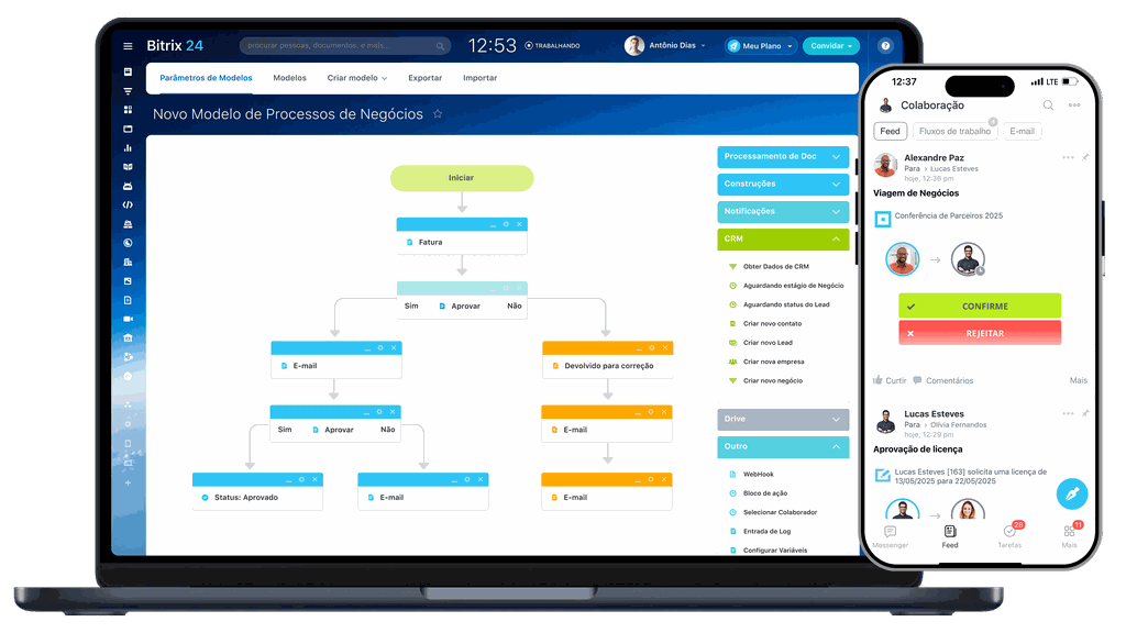 No Bitrix24, por exemplo, isso aparece no pipeline de vendas visual, no registro completo das interações com clientes e nos recursos de automação de tarefas e follow-ups. Em vez de a operação ficar fragmentada, a empresa concentra o relacionamento comercial num só ambiente e reduz a chance de algo se perder no caminho.