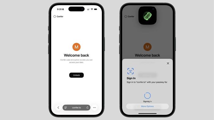 Para garantir esse modelo, o app usa passkeys protegidas pela biometria do dispositivo. O histórico permanece protegido, impedindo o acesso até mesmo dos desenvolvedores da plataforma.