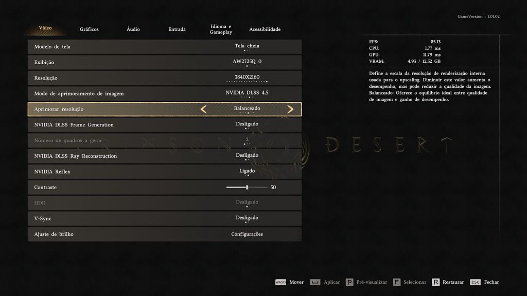 Em 1440p, a situação fica mais fácil, onde o modo Qualidade muitas vezes chega perto do nativo em estabilidade e oferece um ganho expressivo na taxa de quadros. Já em 4K, a mágica do upscaling é total, permitindo o uso do modo Equilibrado com um impacto visual quase imperceptível, liberando fôlego extra para recursos pesados como o ray tracing. Se o jogo tiver path tracing, dá para arriscar o preset Performance também.