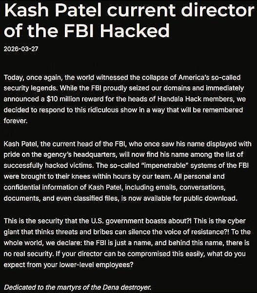 Em meio ao atual conflito entre Estados Unidos e Irã, a guerra parece ter migrado também para o meio digital. Segundo os hackers do Handala, a ação contra o diretor do FBI foi uma resposta às ações da agência, que apreendeu domínios do grupo e ainda lançou uma recompensa de até US$ 10 milhões para quem obtivesse informações sobre seus membros.
