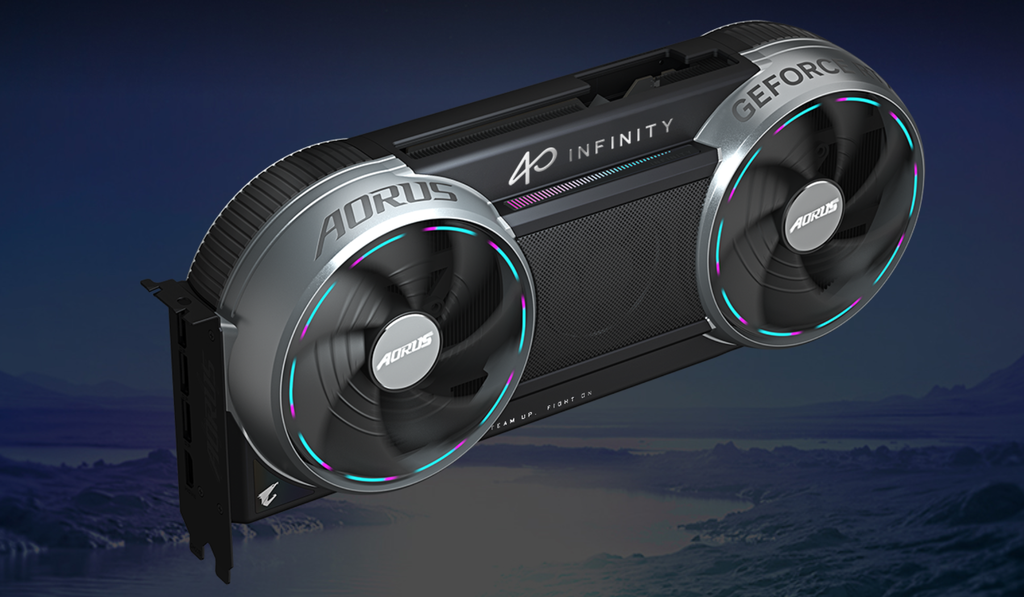 A Gigabyte revelou ainda um projeto bastante curioso envolvendo a melhor GPU da NVIDIA: a Aorus GeForce RTX 5090 Infinity, uma placa com um sistema robusto de refrigeração, uma verdadeira obra-prima de engenharia térmica. Para domar o poder da GPU mais rápida do mundo, a Gigabyte implementou heatpipes supercondutores e a revolucionária tecnologia de resfriamento Windforce Hyperburst.