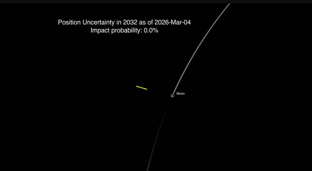 Na época, as estimativas indicavam uma pequena chance de o impacto acontecer em 22 de dezembro de 2032 — no entanto, novos dados revelaram que o asteroide iria “errar” a Terra, mas que tinha 4,3% de chance de atingir a Lua. O destino da rocha espacial ainda era incerto devido à falta de dados da sua órbita ao redor do Sol, mas isso mudou com o telescópio James Webb.