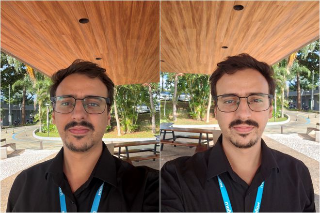 Em selfies, mais uma vez, o Motorola vence. A quantidade de informações é bem maior, e ele capta detalhes mais precisos. Isso é bem perceptível em regiões como cabelo e barba: os fios ficam mais “separados”. As marcas na pele, como rugas, também são mais perceptíveis no Motorola, o que mostra um trabalho melhor na captação de detalhes.