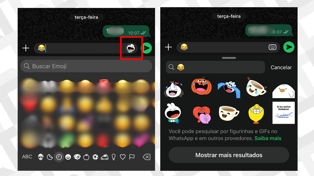 A novidade aparece na versão 26.8.75 do aplicativo, já disponível na App Store. Uma das vantagens é a descoberta de novas figurinhas: ao pressionar o botão “Mostrar mais resultados”, o WhatsApp pode trazer dezenas de sugestões diferentes com base no emoji inserido.