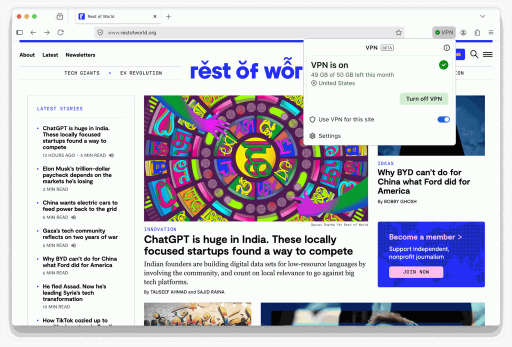 Alguns navegadores no mercado já contam com a ferramenta integrada, como o Opera e o Brave. No caso do Firefox, a desenvolvedora garante proteger até 50 GB de dados de tráfego, com opção para ativar ou desativar em sites específicos.