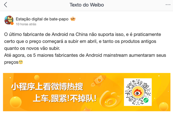O conhecido informante Digital Chat Station trouxe uma notícia pouco animadora nesta quarta-feira (1º). Em vez de um novo vazamento de produto, ele afirmou que as principais fabricantes de smartphones Android da China devem começar a aumentar preços já em abril, incluindo modelos que já estão no mercado.