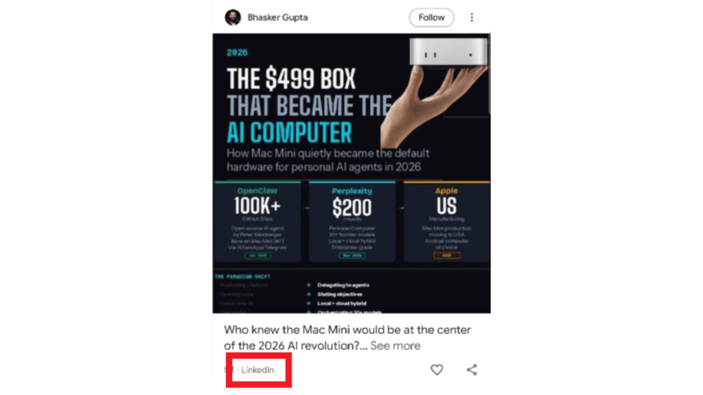 Posts feitos no LinkedIn começaram a aparecer entre os resultados do Google Discover, feed personalizado com notícias de acordo com as preferências de cada indivíduo. A informação é do site DiscoverSnoop.