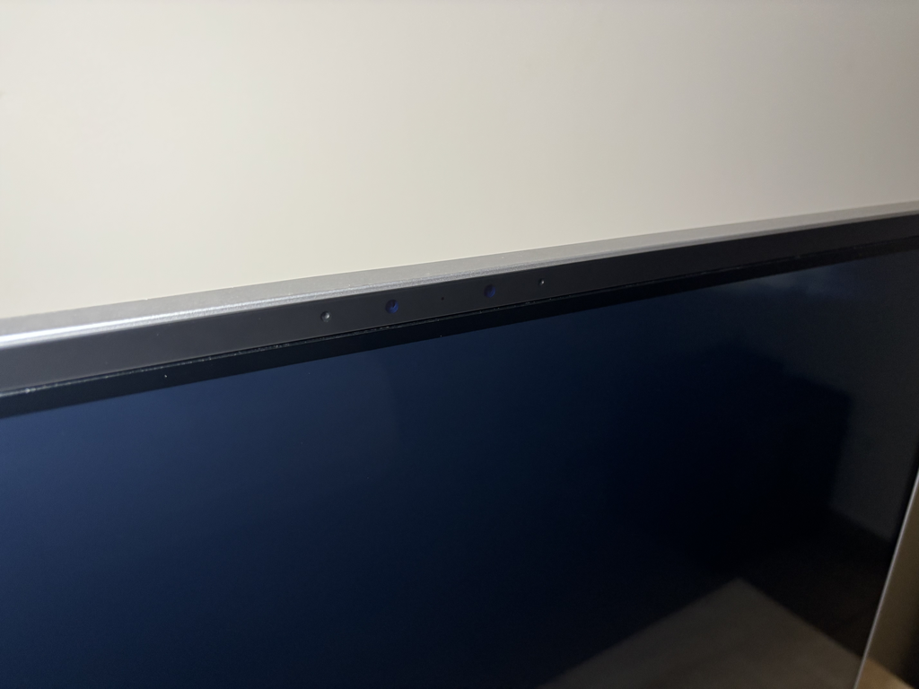 Mesmo sendo um monitor de 27 polegadas, ele é relativamente grande. Sua moldura é maior para acomodar as câmeras (que detalho mais adiante), além de cerca de 4 cm de espessura considerando a moldura da tela e a "barriga" na parte de trás. E olha que a fonte nem é interna.