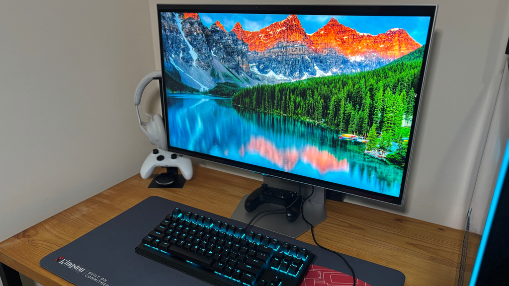 É curioso que o monitor tem requisitos técnicos mínimos para funcionar adequadamente. Segundo a Samsung, a GPU mínima é uma GeForce RTX 3080, que é superior uma RTX 5060, por exemplo. Então é um requisito alto. Aqui, rodando em uma RTX 5070, não tive qualquer problema.