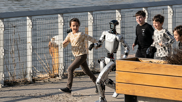 Um registro do robô humanoide Unitree G1 no Brooklyn Bridge Park, em Nova York, ganhou destaque nas redes sociais. As imagens mostram a máquina de 1,3 metro de altura que percorre caminhos entre pedestres, corredores e bancos, e corre em meio a várias crianças no parque.