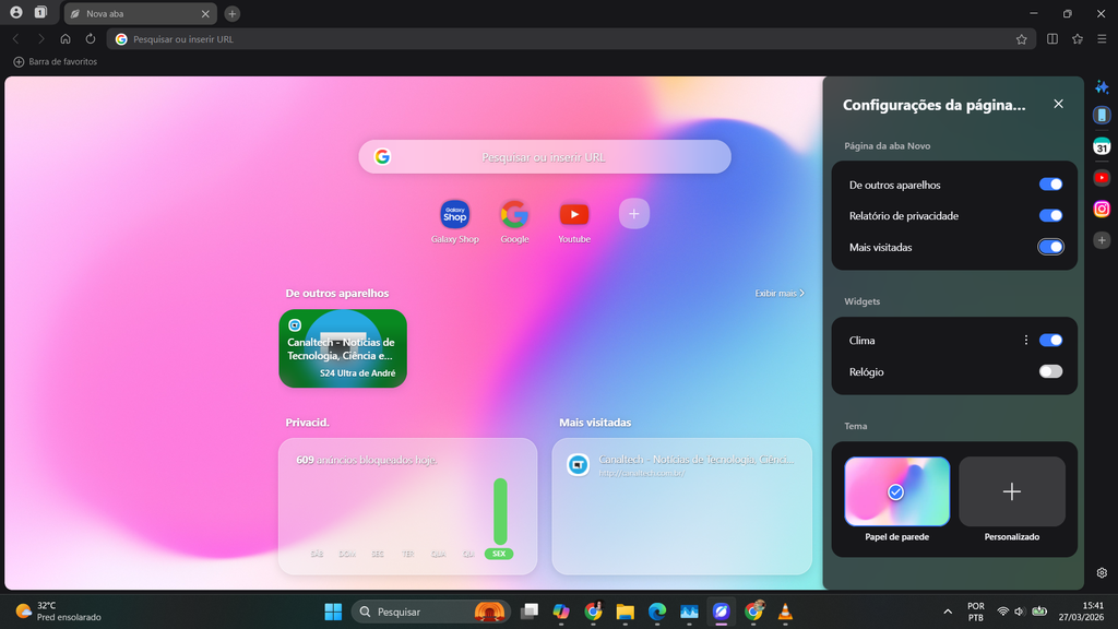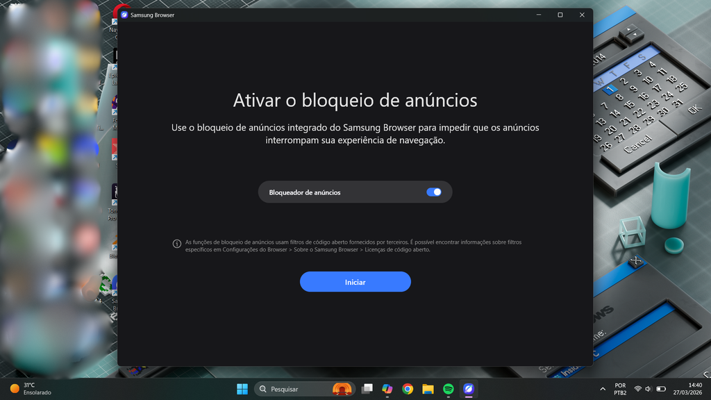 O navegador Samsung Browser ganhou uma versão para Windows 11 e trouxe vários recursos do aplicativo para celulares da fabricante sul-coreana. O app tem suporte ao Galaxy AI para tradução e resumos de páginas, sincronização e bloqueador de anúncios nativo.