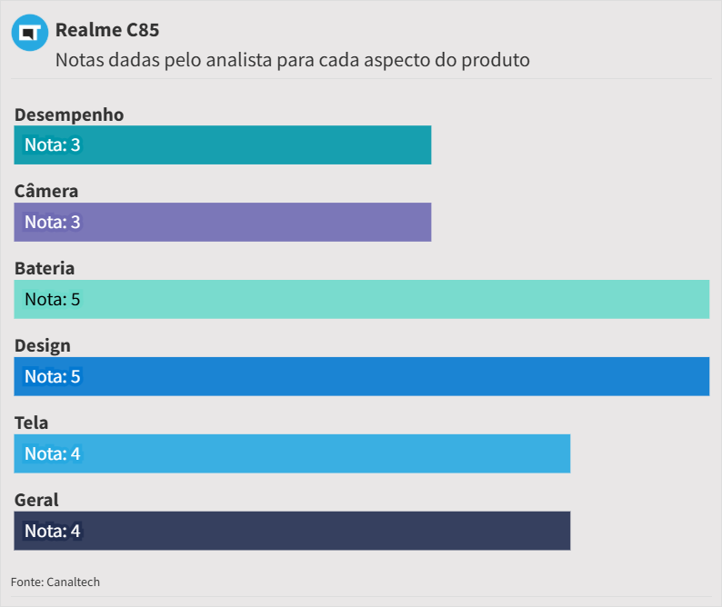 "O Realme C85 não é o celular mais equilibrado que você vai encontrar dentro da categoria, mas se destaca bem nos seus pontos fortes" — Renato Moura Jr.