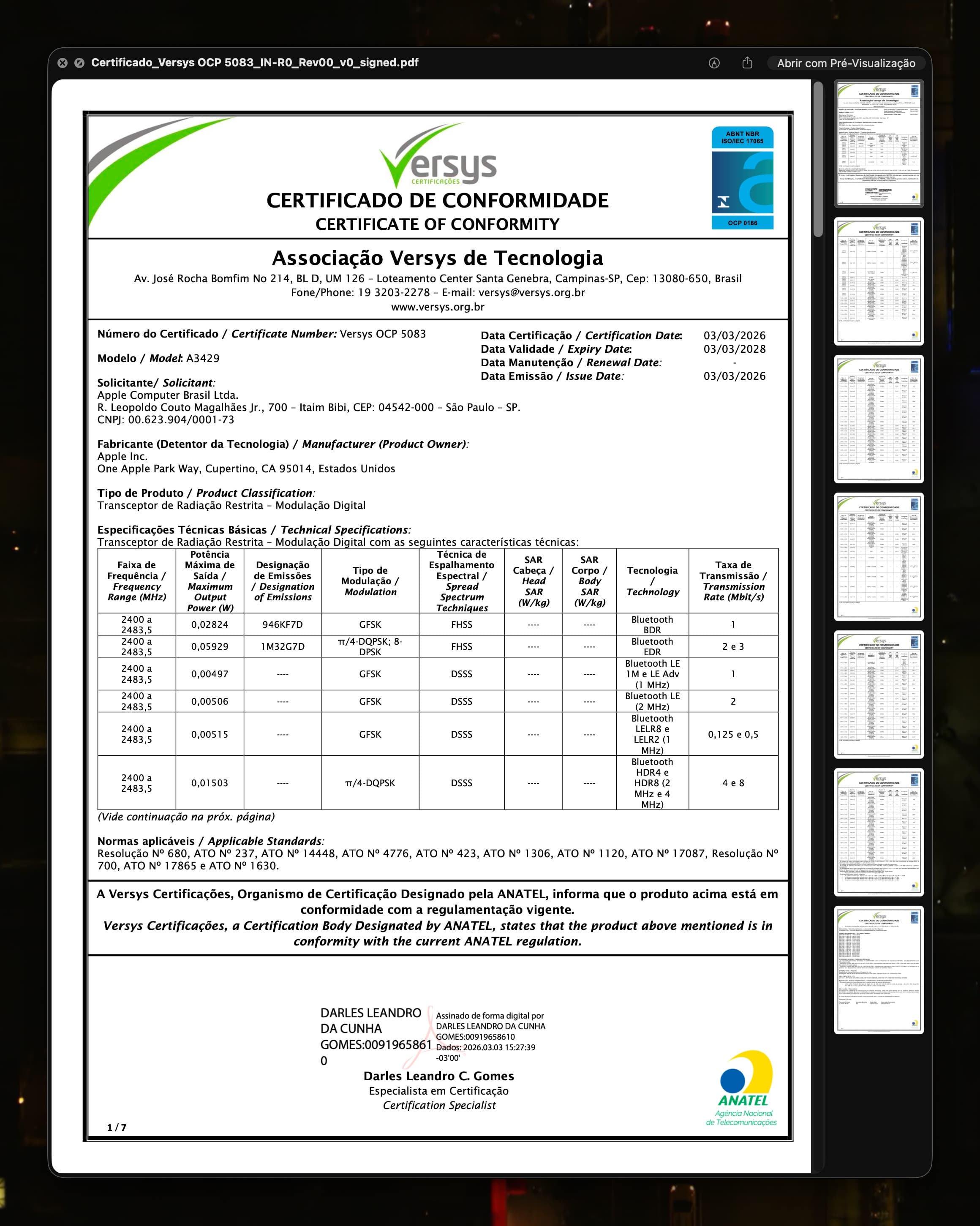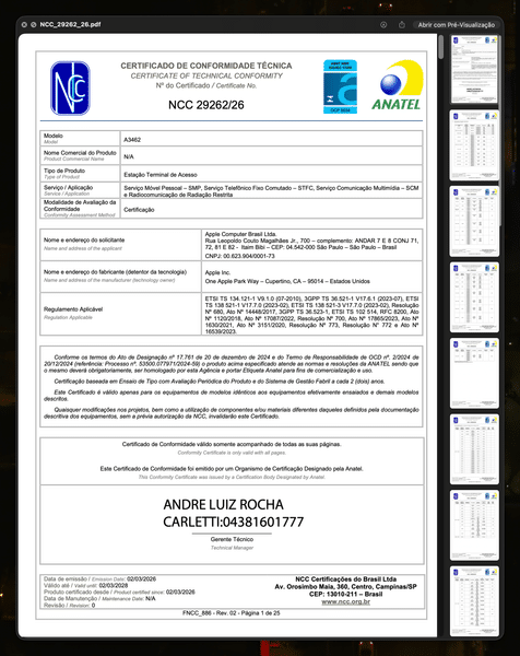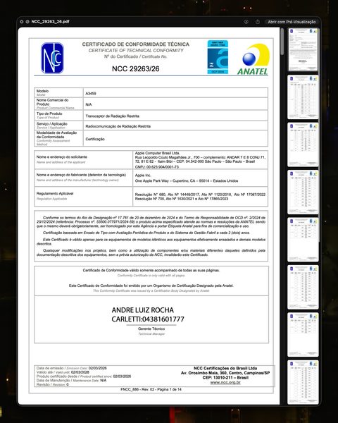 Eis os Certificados de Conformidade Técnica dos tablets (exceto o do modelo A3461, que ainda não foi divulgado):