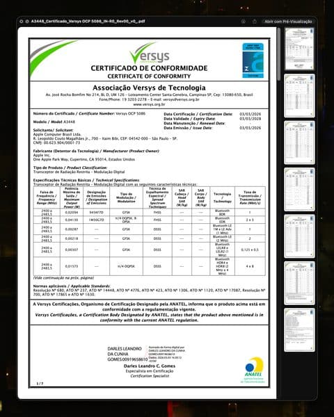 Vale lembrar que a Apple já homologou o iPhone 17e — o que abriu espaço para a sua pré-venda, iniciada hoje —, restando agora apenas o badalado MacBook Neo e os outros modelos do MacBook Pro. Os novos Studio Displays não precisarão passar pela Anatel e estarão disponíveis para compra a partir desta quarta-feira (11/3).