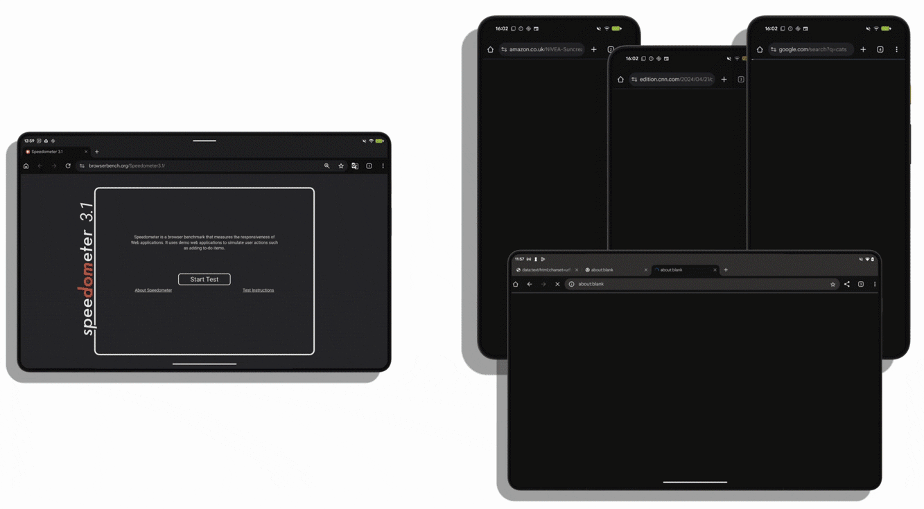 Três dispositivos Android pontuaram mais no Speedometer do que uma “plataforma concorrente” (provavelmente o iOS); já no LoadLine, esses dispositivos obtiveram pontuações até 47% superiores.