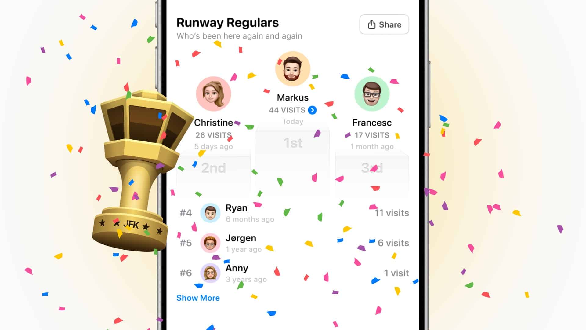 O app também tem sua parte divertida, como o Runway Regulars, uma espécie de ranking que mostra quantas vezes você e seus amigos visitaram determinados aeroportos — ideal para saber qual é aquele amigo que não dispensa uma boa viagem de avião.