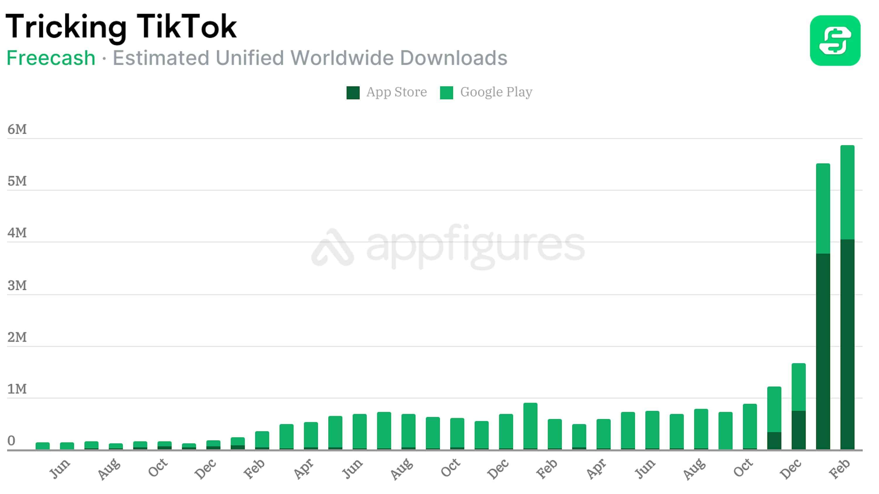 Ainda de acordo com a Appfigures, a Almedia enviou o Freecash para a App Store pela primeira vez em 24 de março de 2024, mas o app foi removido da loja cerca de dois meses depois (13 de junho). Nesse meio tempo, ele foi baixado aproximadamente 70 mil vezes.