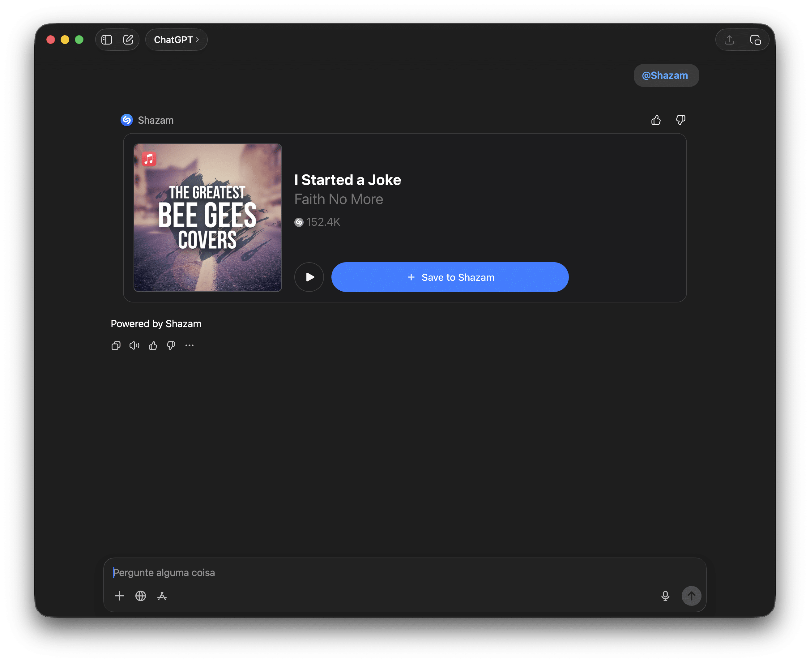 Além de não requerer o app oficial do Shazam instalado, a novidade também funciona em qualquer plataforma que suporte o ChatGPT, podendo ser uma mão na roda a depender do sistema que você utilize.