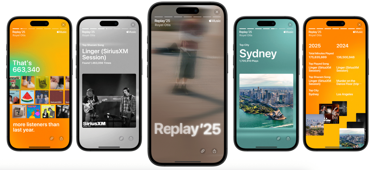 Artistas também receberam a sua própria versão do Replay no Apple Music. Nesse caso, é possível conferir dados como o crescimento na plataforma e resumos com a performance na comparação ano a ano.