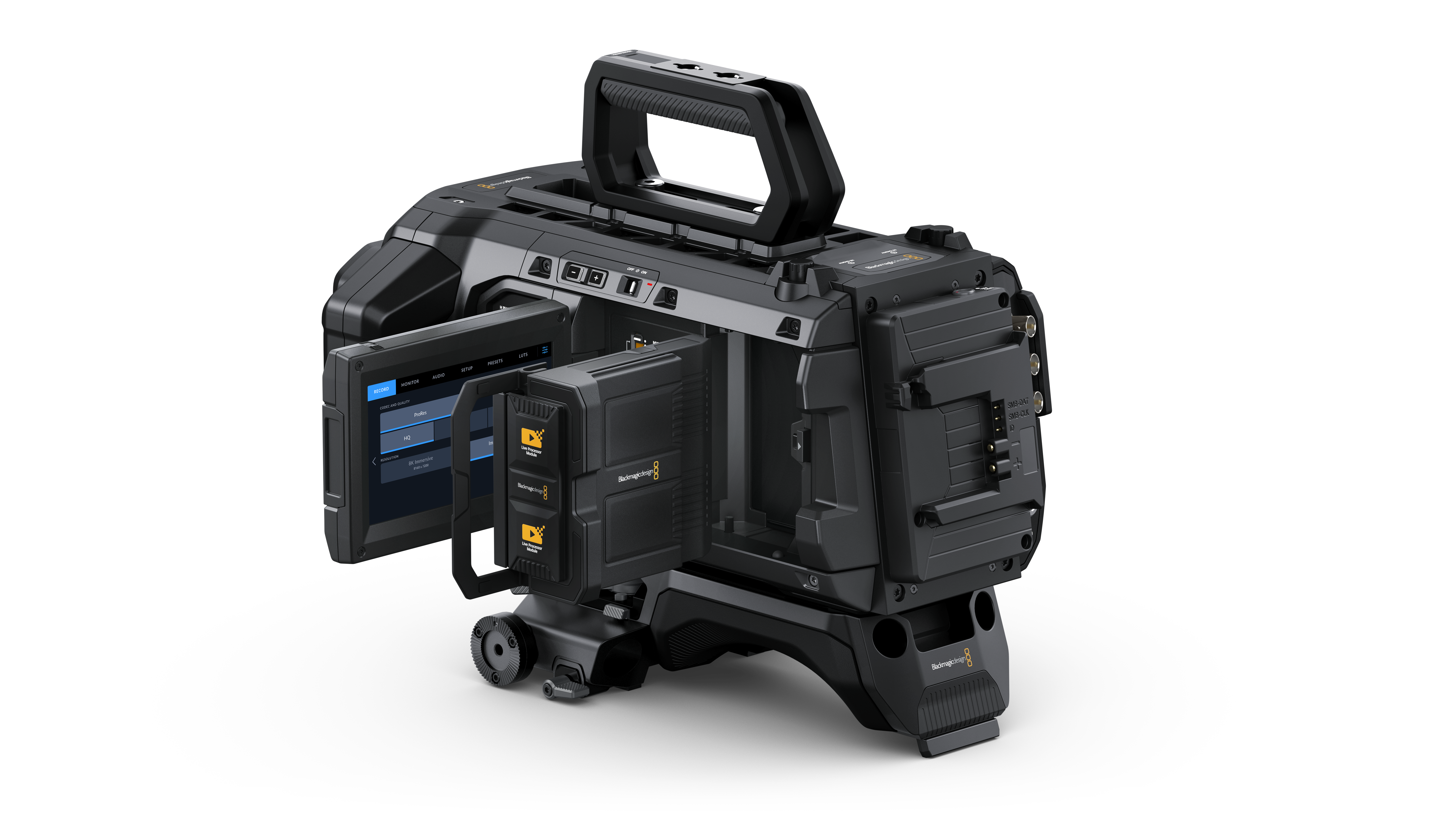 Além disso, o setor de design da empresa também anunciou o Blackmagic URSA Cine Live Encoder, um módulo de processamento ao vivo que comprime vídeos imersivos em tempo real no formato Apple ProRes e entrega o conteúdo como vídeo IP no padrão SMPTE-2110-22. Isso significa que, na prática, os fluxos de imagem estéreo com altas taxas de quadros podem ser combinados em uma única conexão de 100Gbps. A ferramenta chega custando US$1.645.