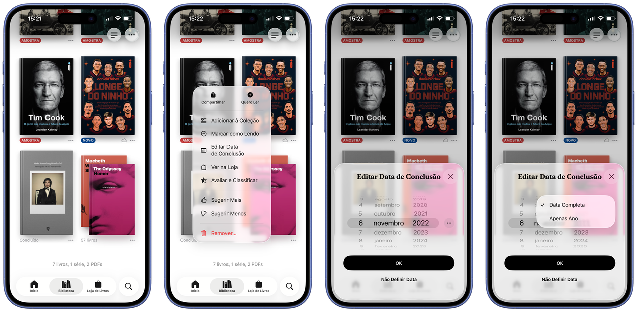 Como alterar a data de conclusão de um livro no iPhone/iPad