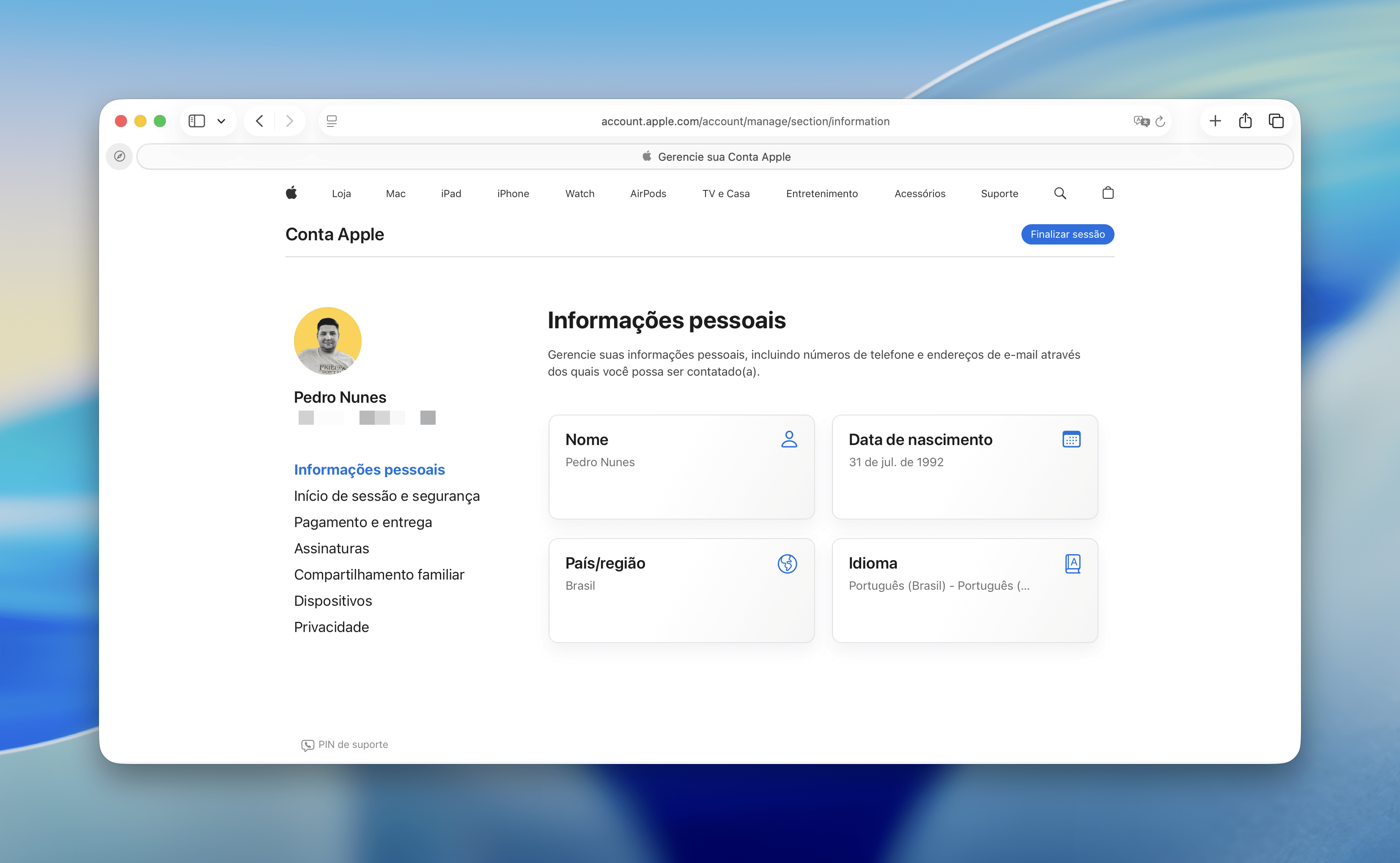 Como alterar a data de nascimento na Conta Apple pelo Mac