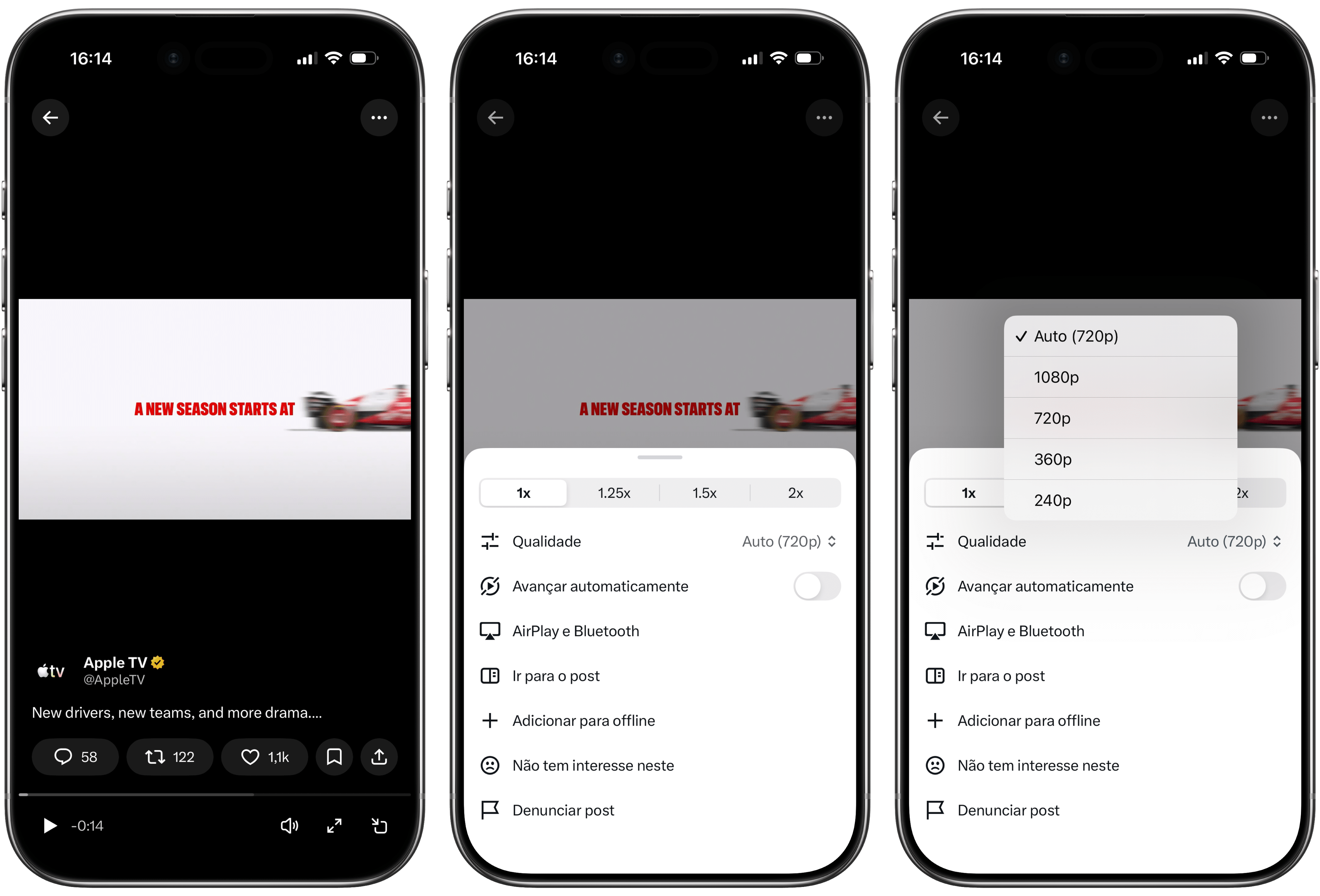 Escolha “Qualidade” ou “Qualidade do vídeo” e selecione a resolução que quiser (ou use o ajuste automático).