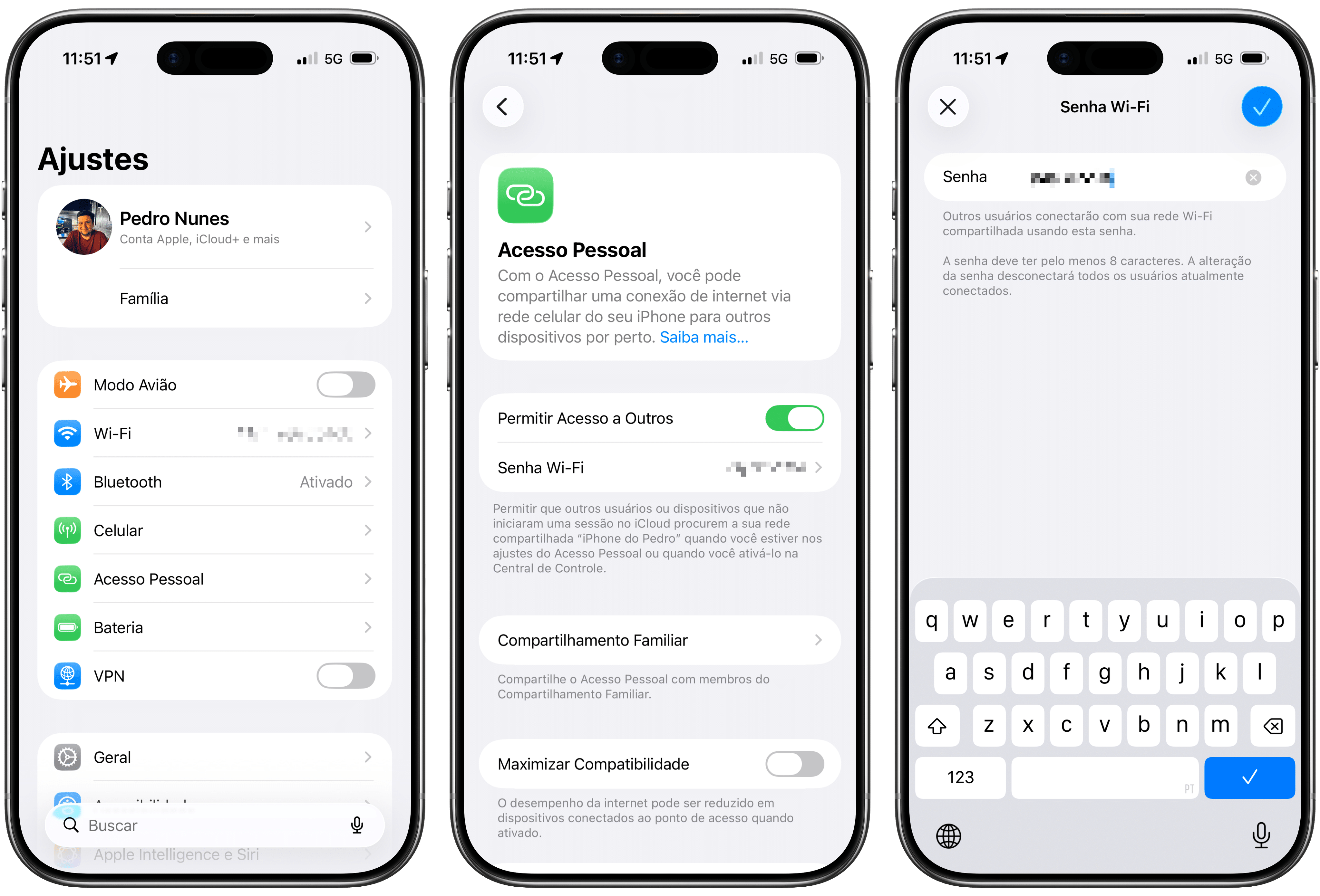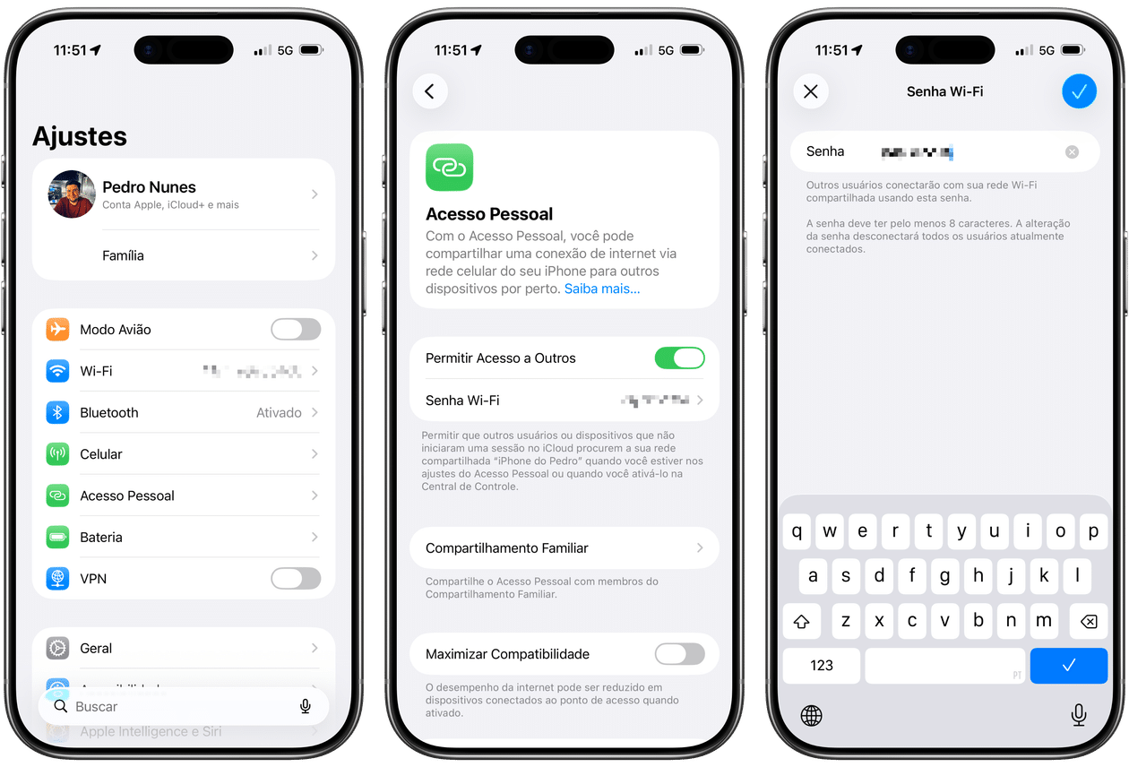 O Acesso Pessoal (Personal Hotspot) permite que você compartilhe os dados da rede celular (4G/5G) do seu iPhone ou iPad com outros usuários. Isso, na prática, acaba ajudando muito quem está sem internet por perto ou quer usar os dados móveis para se conectar pelo Mac, por exemplo.