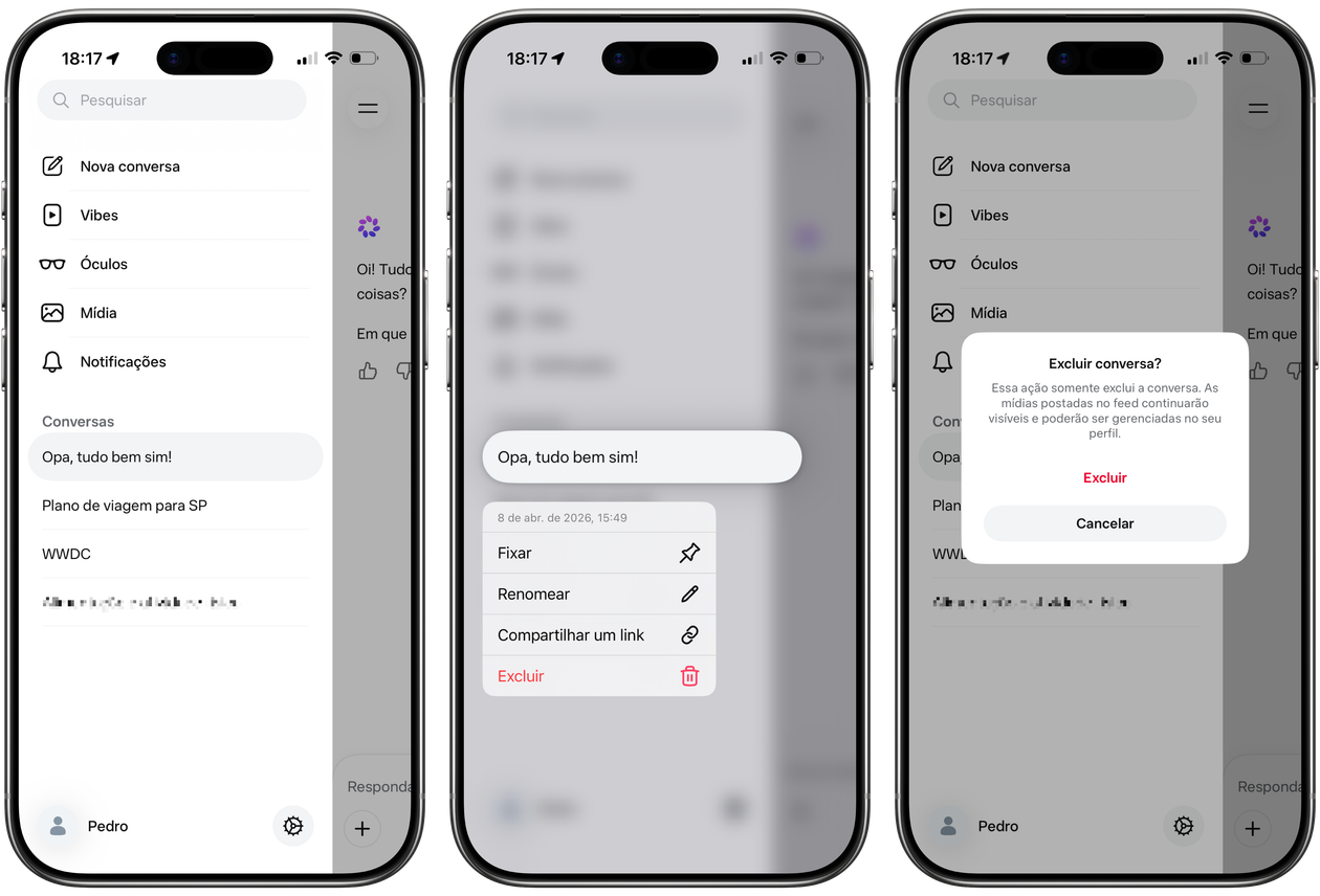 A qualquer momento, você pode acessar o seu histórico de conversas dentro do site ou aplicativo da Meta AI, solução de inteligência da empresa comandada por Mark Zuckerberg.
