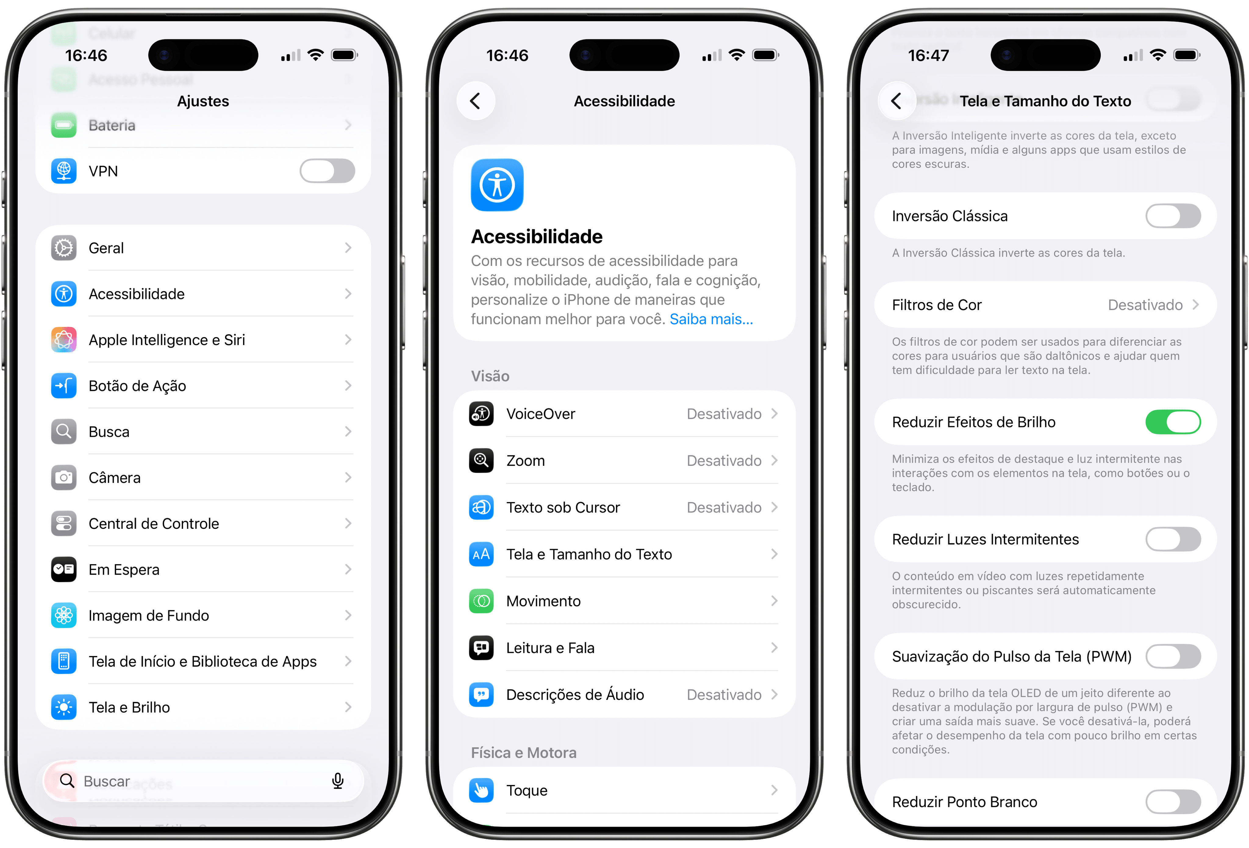 Pedro Henrique Nunes05/12/2023 • 07:00Abra os Ajustes (Settings), toque em “Acessibilidade” e entre em “Tela e Tamanho do Texto”.