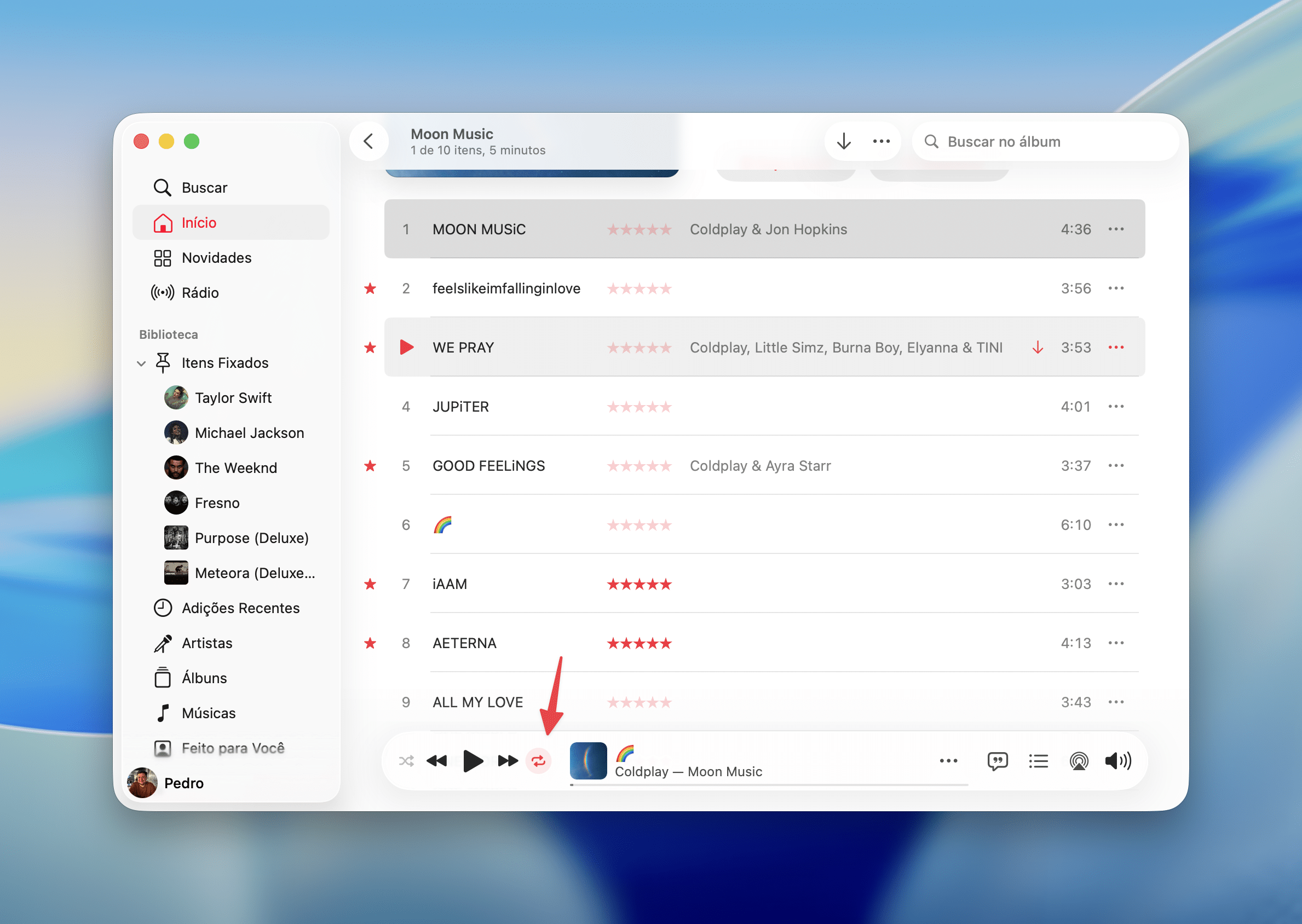 Como ativar a repetição no Música pelo Mac