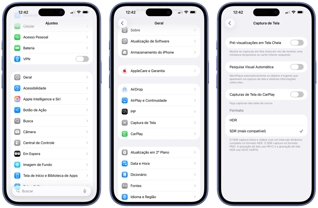 - Marque ou desmarque a chave ao lado de “Capturas de Tela do CarPlay”.