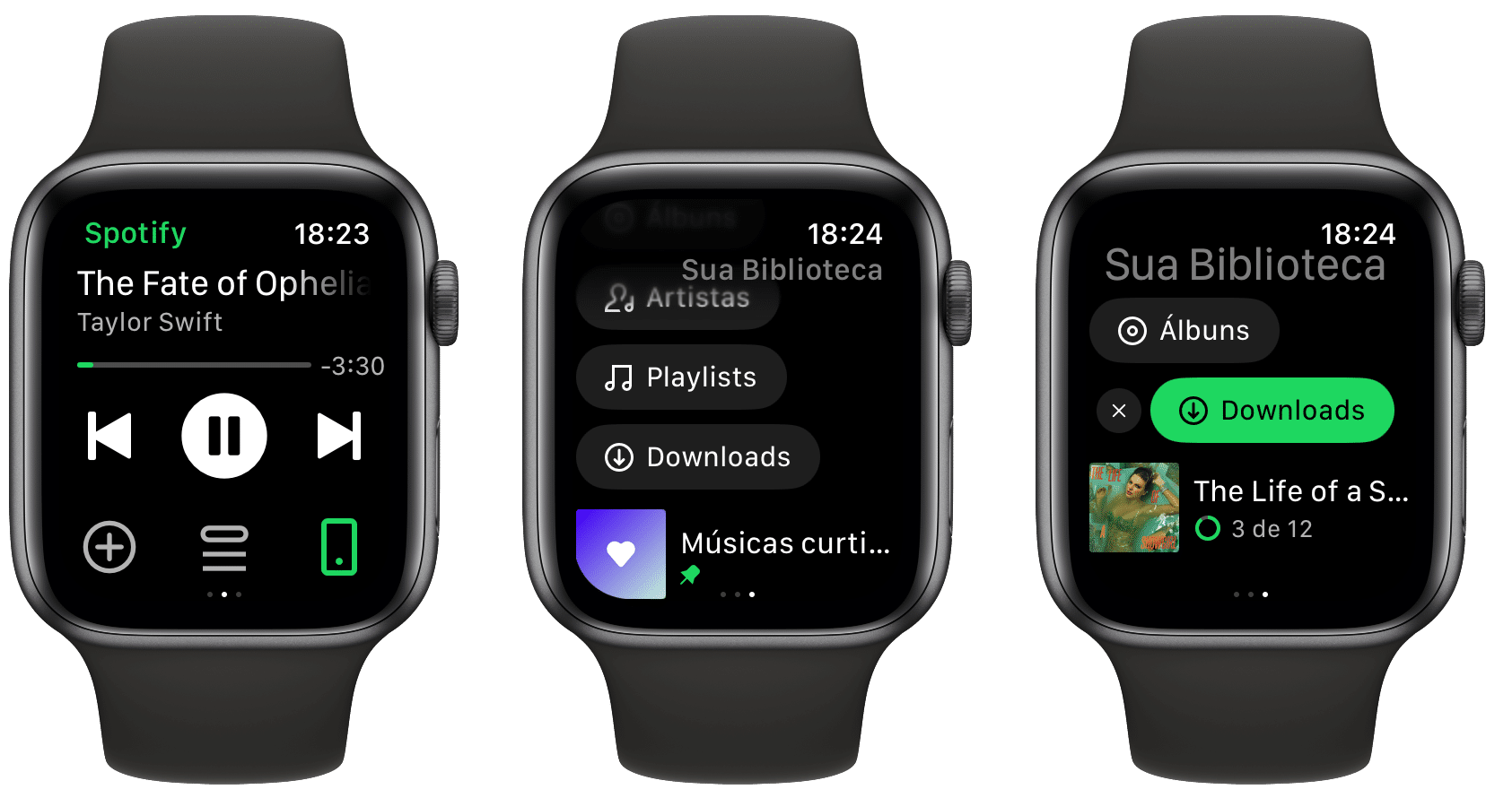 Ocorre que só foi muito tempo depois que o serviço de streaming passou a permitir que esse processo fosse feito diretamente pelo pulso, ou seja, sem que seja necessário fazer tais ajustes no iPhone. Mais precisamente, você pode baixar álbuns, playlists e episódios de podcasts pelo smartwatch.