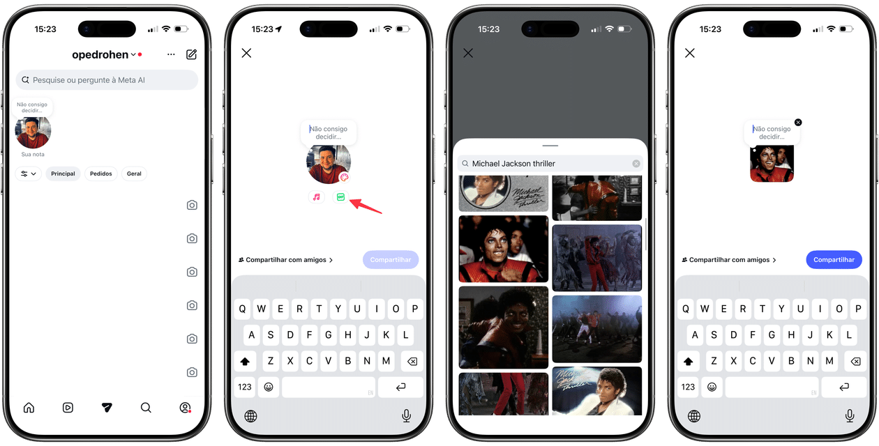 Além de textos, é possível também adicionar uma música e, mais recentemente, usuários também podem colocar um GIF (animado ou não) nessa área.