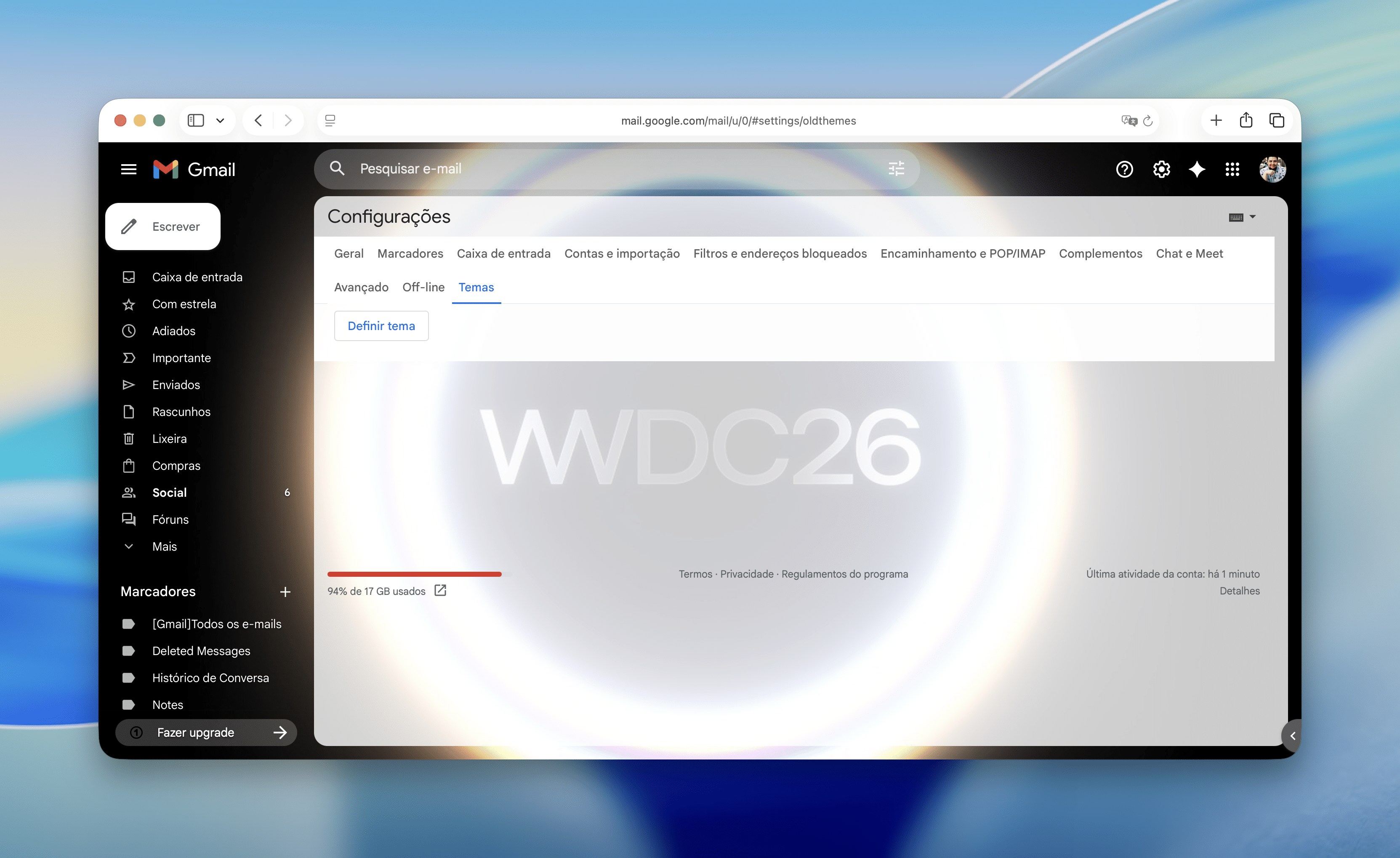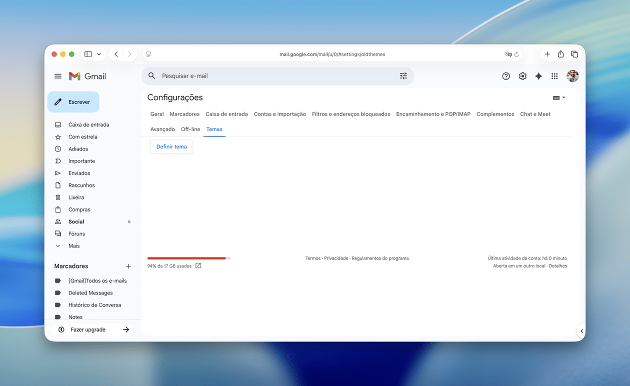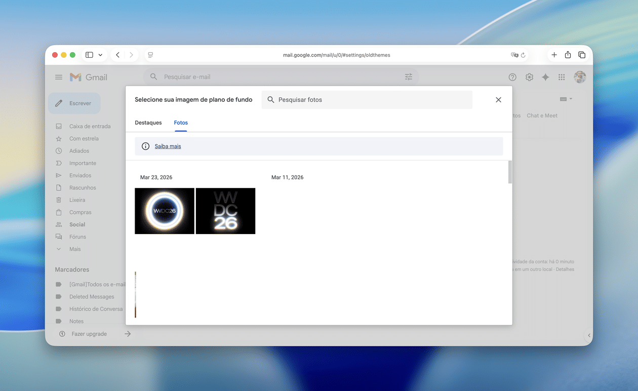 O Gmail oferece, há vários anos, uma opção que permite personalizar a imagem de fundo do serviço de emails do Google — ainda que isso só funcione quando acessá-lo por meio de um navegador (web).