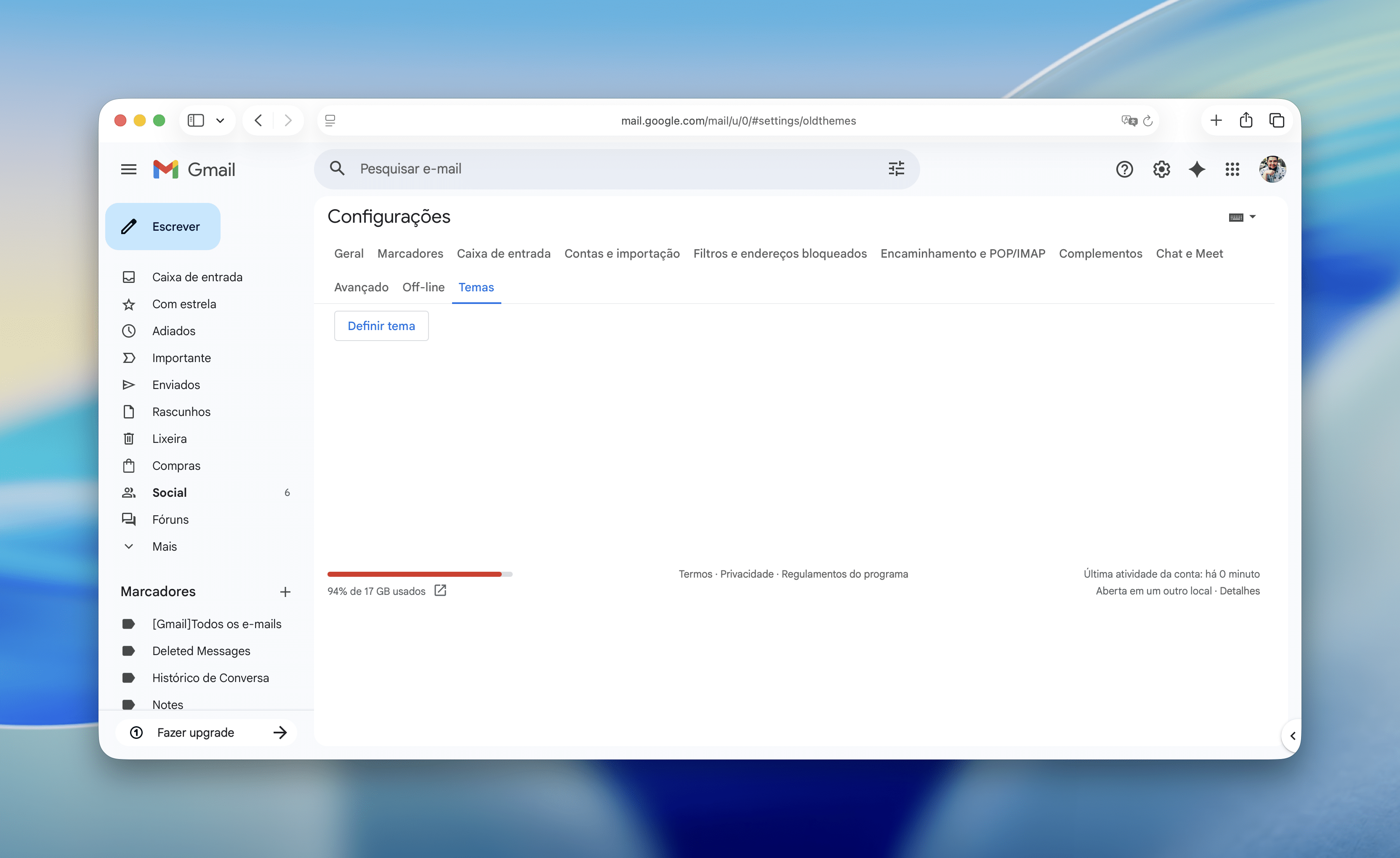 - Clique na aba “Temas” e em “Definir tema” a fim de visualizar as imagens disponibilizadas pelo Google.