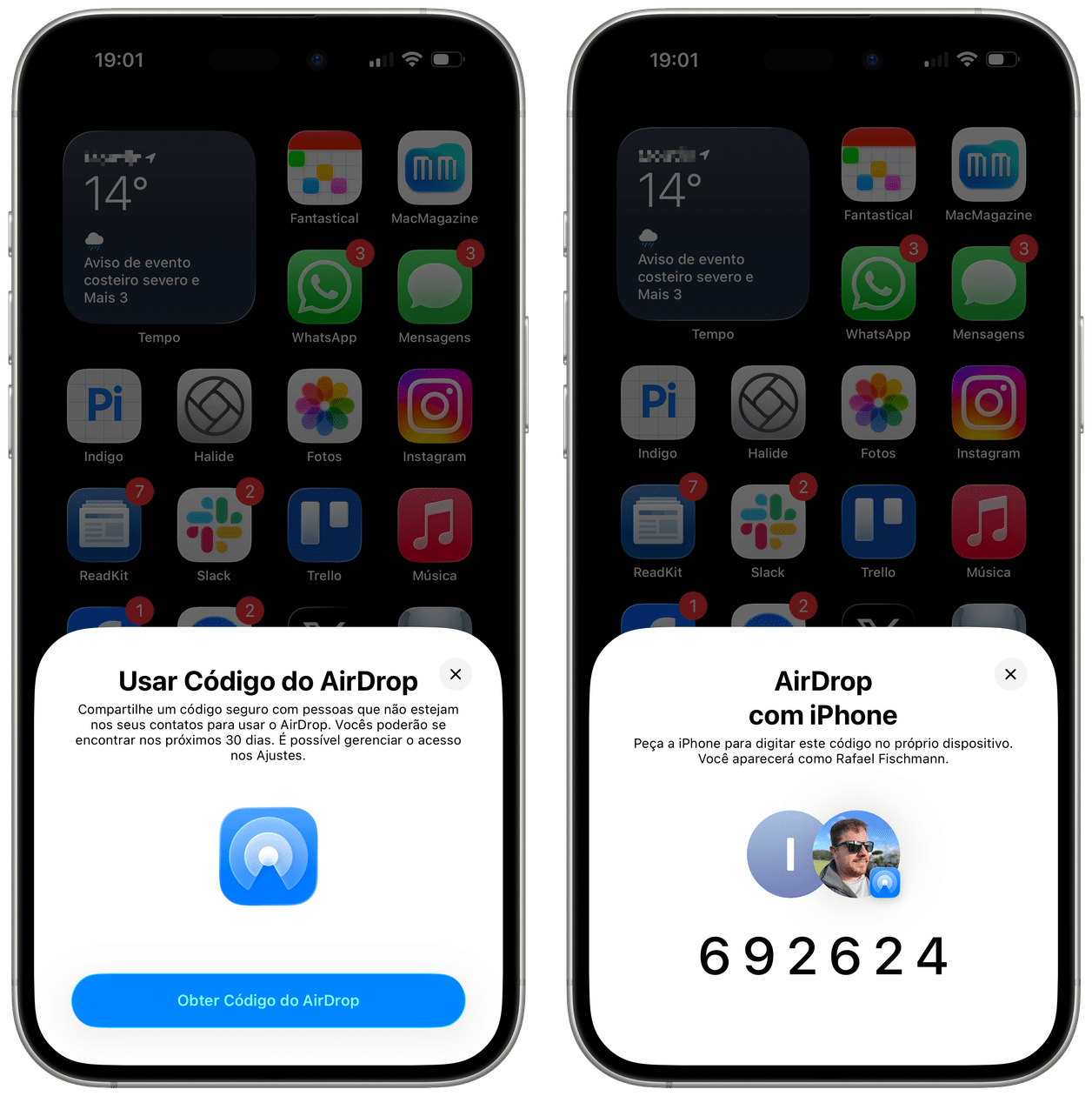 Normalmente, ao ativar o AirDrop para todas as pessoas, isso fica disponível apenas numa janela de dez minutos (por questões de segurança). Agora, a Apple permite que você compartilhe um código seguro com uma pessoa confiável (mas que não esteja na sua agenda de contatos) para trocar arquivos por até 30 dias.