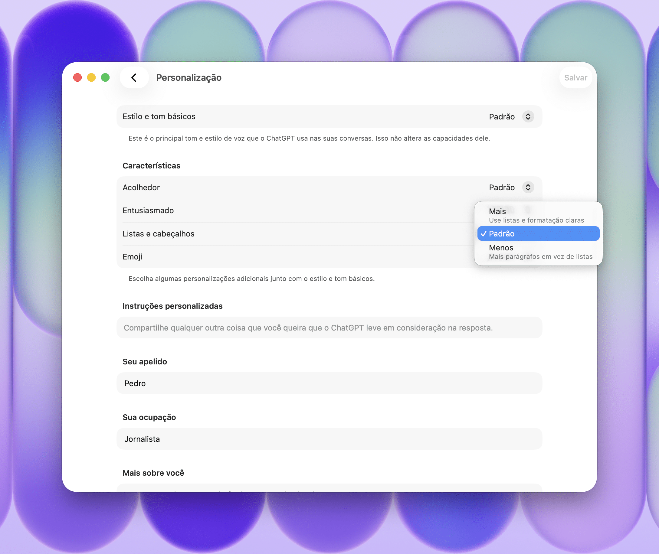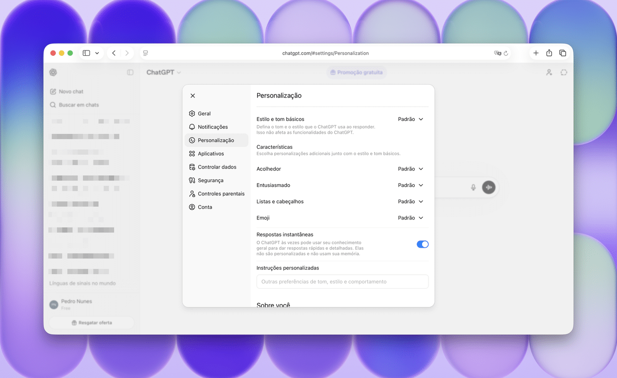 Há vários recursos que podem ser personalizados no ChatGPT, solução de inteligência artificial da OpenAI.