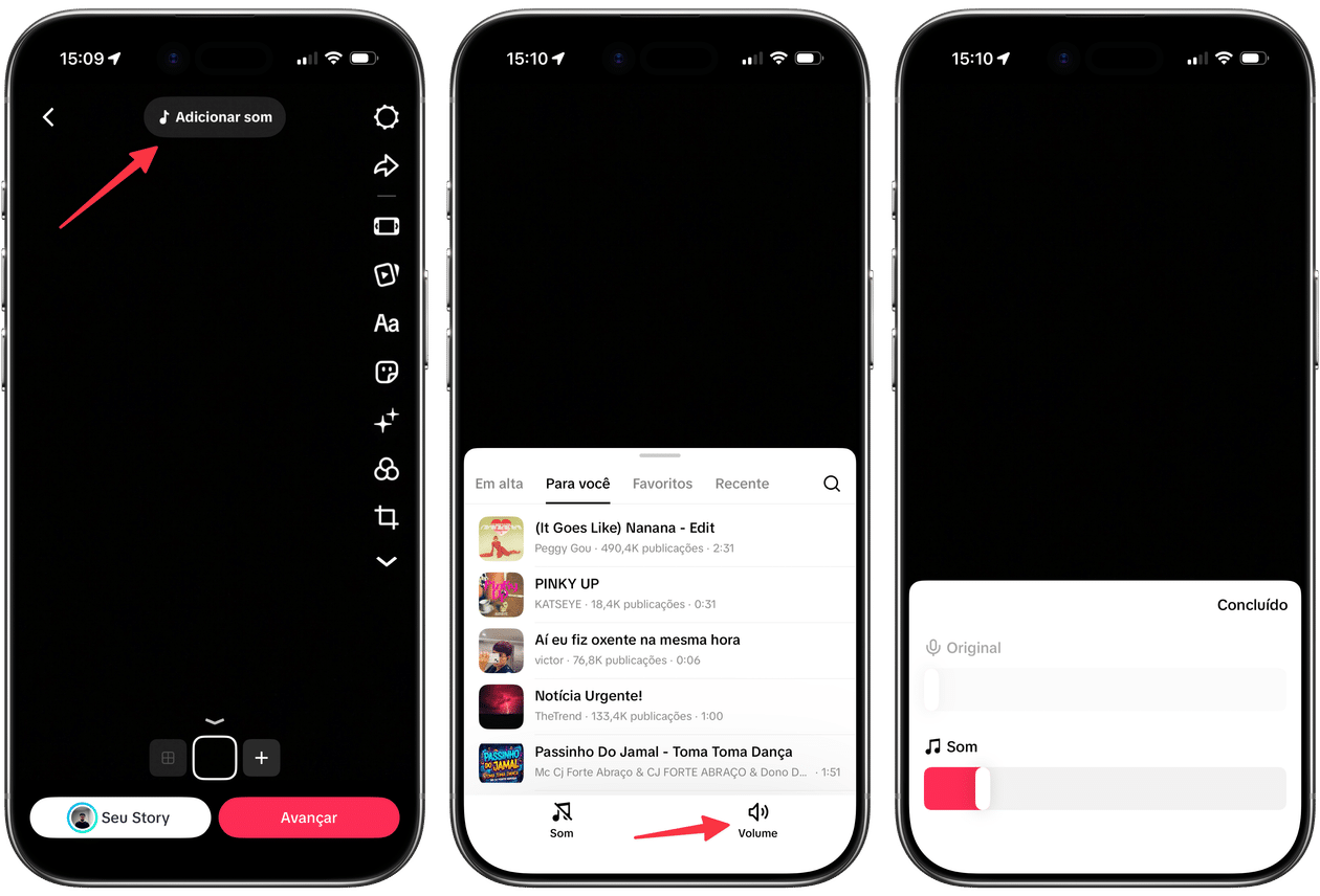 O que muitos criadores de conteúdo não sabem é que você pode regular, de forma manual, o volume do áudio do seu vídeo e da música a ser usada na publicação. Assim, você mantém um mais alto que o outro ou deixa-os em um volume igual.