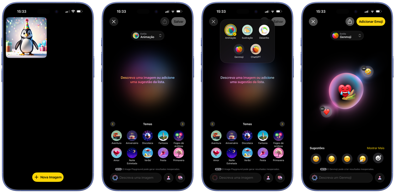 Com a chegada do iOS/iPadOS 26 e o macOS Tahoe 26, os usuários também podem fazer isso dentro do aplicativo Image Playground, da própria Apple. Veja como criá-los por lá! 🙂