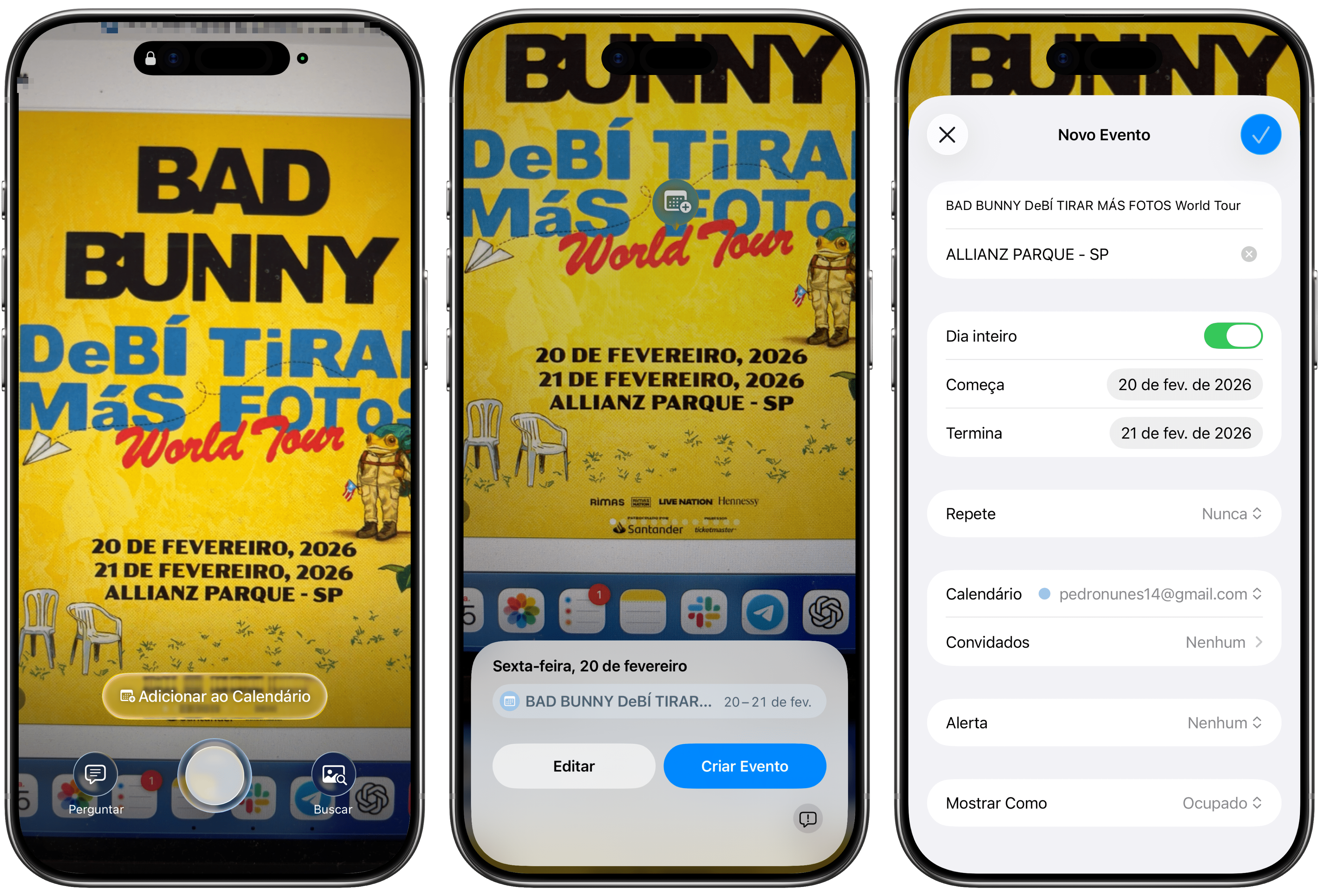 Uma funcionalidade bacana é que você pode apontar para um pôster, banner ou folheto a fim de adicionar o evento contido nele diretamente no app Calendário (Calendar).