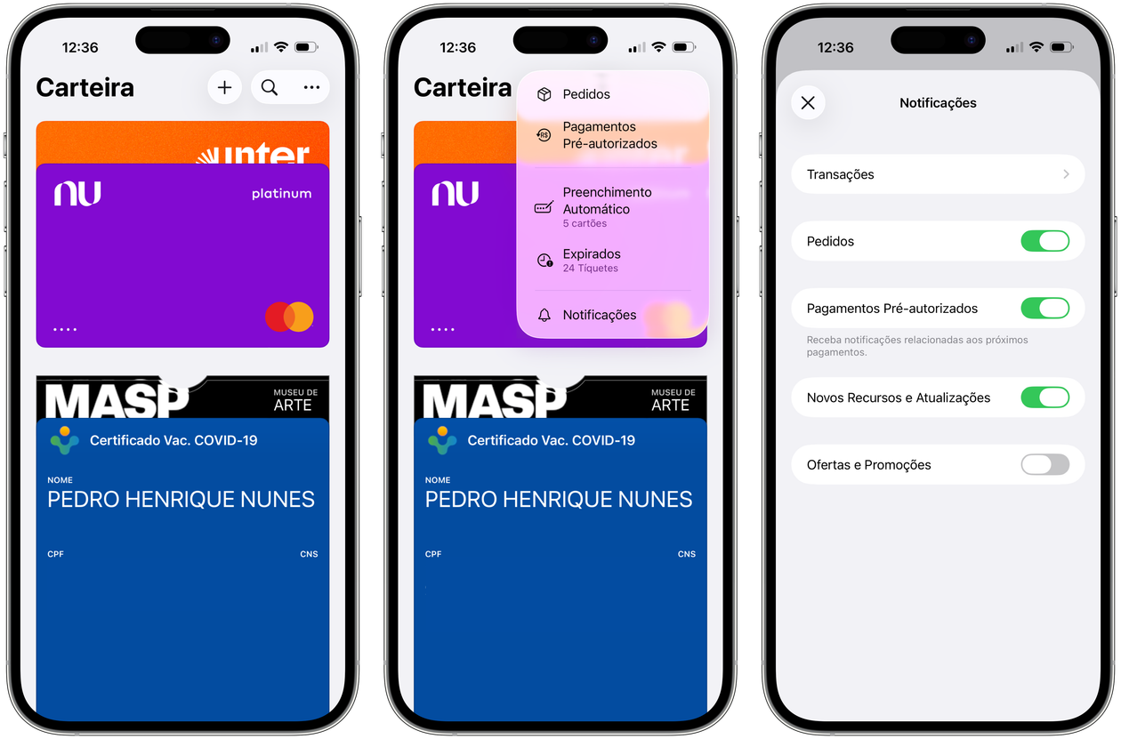 Pedro Henrique Nunes23/10/2025 • 08:00Abra o app Carteira no seu iPhone, toque nos três pontinhos (no canto superior direito) e escolha “Notificações”.