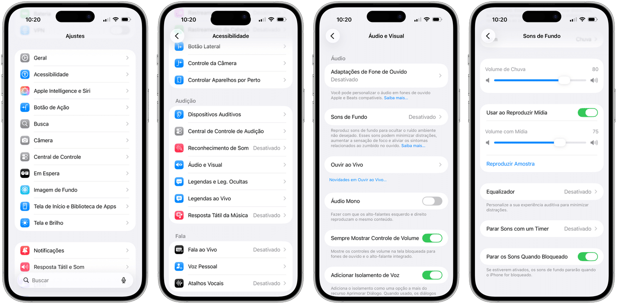 Como ajustar o equalizador dos Sons de Fundo [iPhone, iPad e Mac]