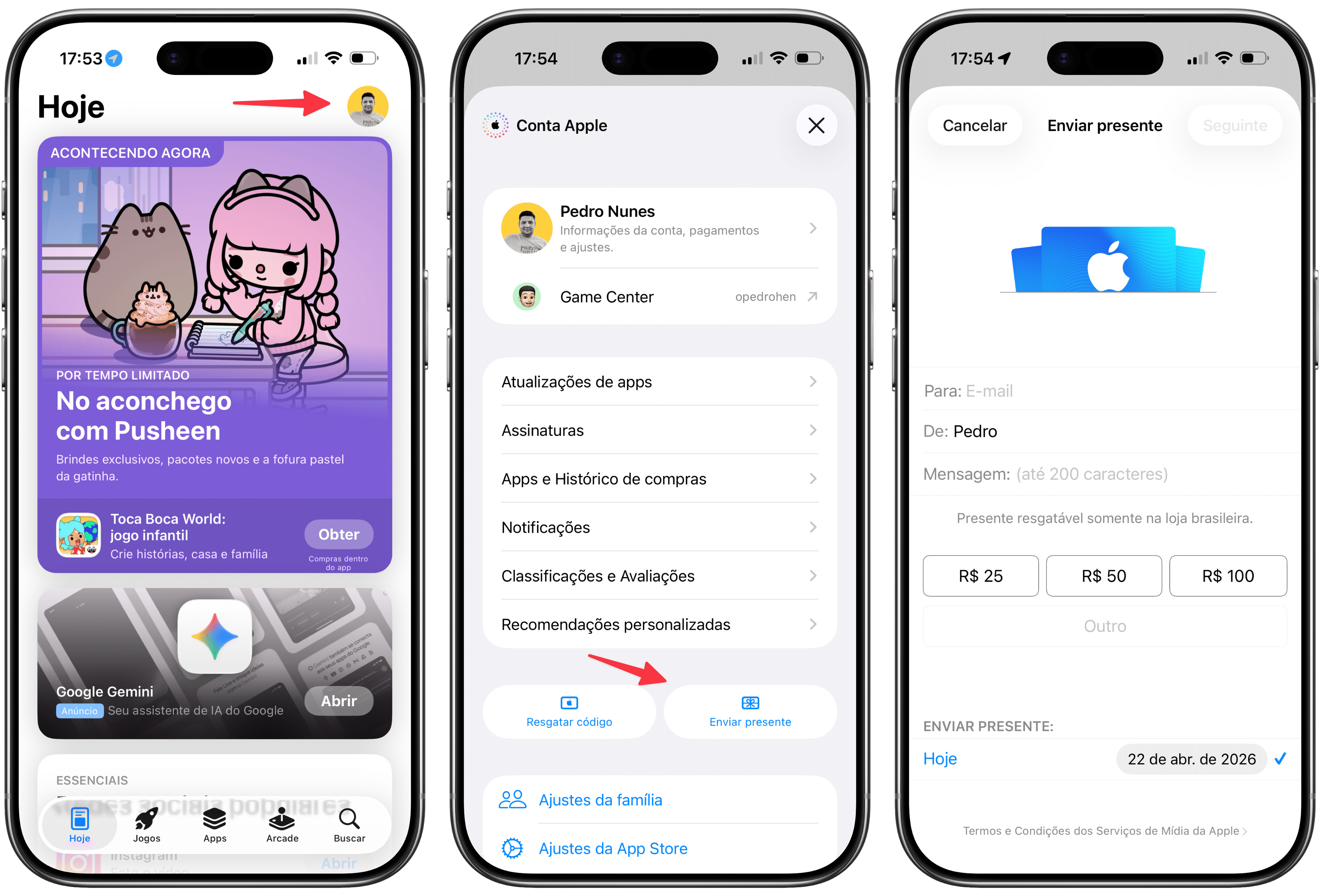 Os créditos, vale observar, podem ser usados na App Store, na iTunes Store, na Loja de Livros, no Apple TV e mais. Veja como presentear alguém! 🤑