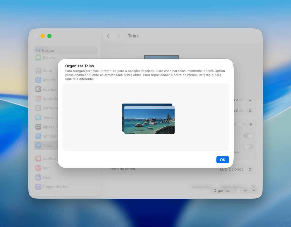 Se quiser, você pode alterar qual será a tela principal usada pelo macOS — é nela, por exemplo, que o Dock e a barra de menus do sistema ficam visíveis.