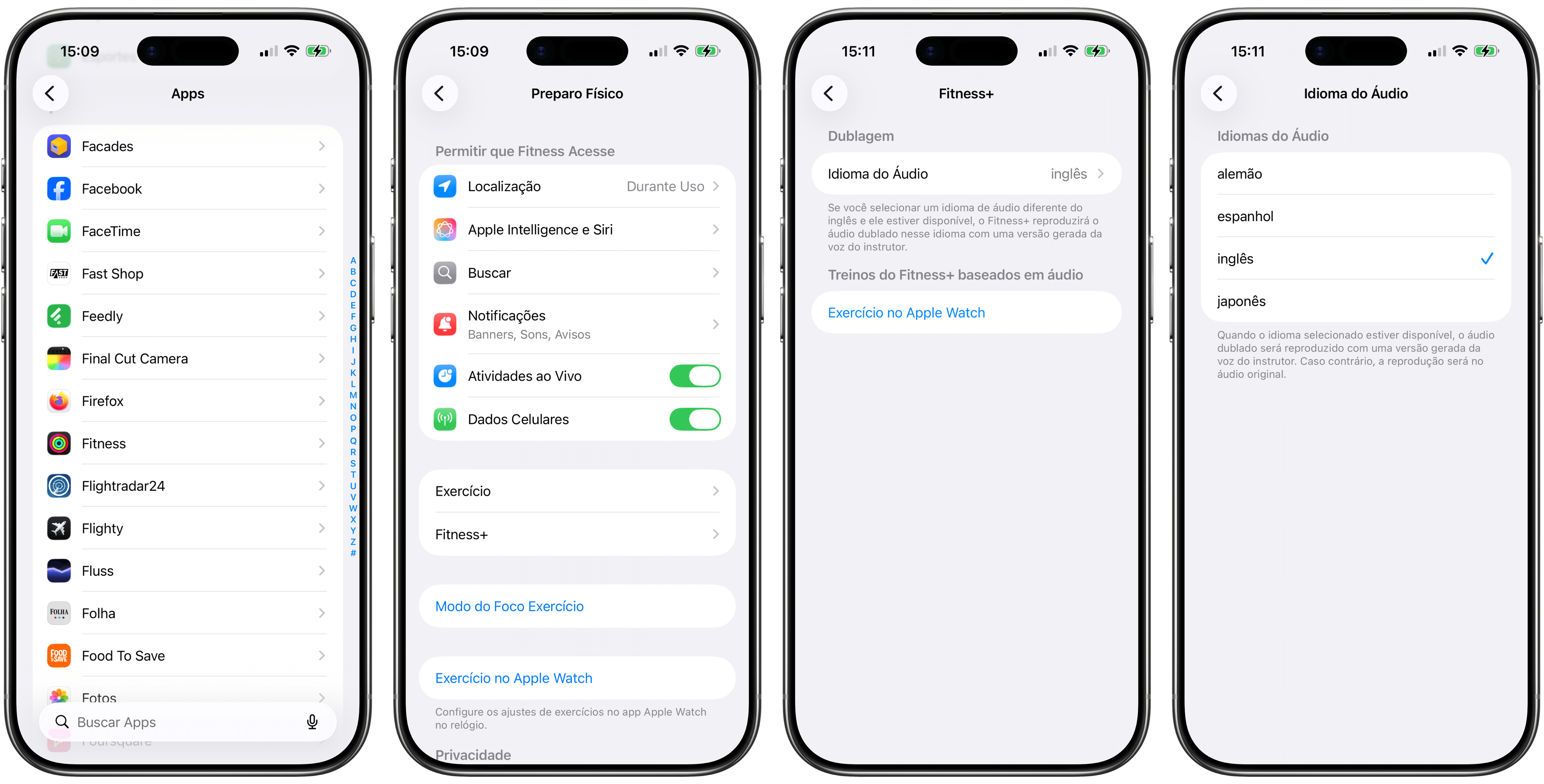 Há pouco tempo, o Apple Fitness+ oferece opções de exercícios dublados em certos idiomas, como espanhol e japonês (mas ainda não em português, vale observar).